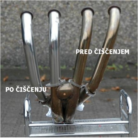 Edinstveno sredstvo za odstranjevanje zažganin modre in rjave barve iz cevi izpušnega sistema. Kombinacija kemijskih sestavin in polirnih delcev. Zagotavlja vrhunske rezultate in izpušne cevi bodo kot nove. Vsebina plastenke je 125 ml.