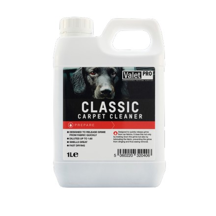 Classic Carpet Cleaner je učinkovito čistilo sredstvo za čiščenje vseh tekstilnih površin. Zasnovan je za odstranjevanje trdovratnejših madežev, prodira globoko v madež ter ga razgradi do te mere, da ga lahko enostavno odstranite z sesalcem. Deluje hitro in učinkovito. Sredstvo je zelo koncentrirano in ga je pred uporabo potrebno redčiti z vodo. Primeren je za vse barve tekstila.