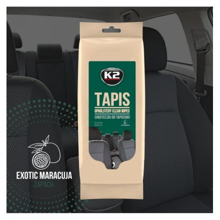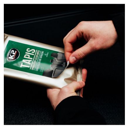 Robčki Tapis Wipes pakirani v priročnem pakiranju da jih lahko spravimo v vsak predal vozila. Namenjeni so za hitro in enostavno čiščenje vseh tekstilnih površin v vozilu. Hitro in enostavno odstranjujejo nesnage iz tekstilnih površin. V paketu je 24 robčkov. Robčki zagotavljajo prijeten in svež vonj po čiščenju.