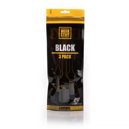Work Stuff Detailing Brushes Black je serija najtrpežnejših detailing čopičev za zunanjo in notranjo uporabo. Čopiči so sestavljeni iz gostih sintetičnih ščetin, katera so odporna na različne kemikalije. Kratke ščetine preprečujejo pršenje čistila ter omogočajo boljše odstranjevanje trdovratnejše umazanije. Še posebej je primeren za čiščenje platišč in mest okoli vratnih tečajev. Ročaj je narejen iz polne plastike in je dvojno lakiran. V kompletu so trije čopiči velikosti 16,24 in 30.