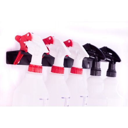 Stensko držalo za plastenke z razpršilko. Prašno barvan, izdelan iz kvalitetne 1,5mm debele pločevine. Dolžina 40 cm.