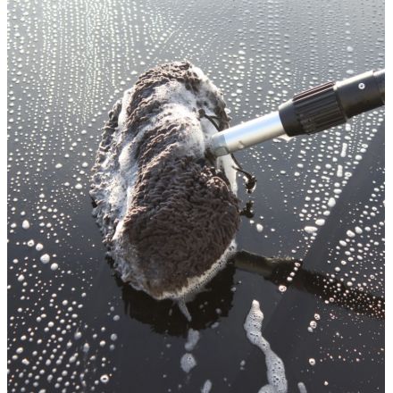 Prevleka za krtačo iz mikrovlaken je nepogrešljiv pripomoček pri čiščenju vozil. Enostavno jo lahko namestite na krtačo za pranje ali krtačo za avtopralnico. Prevleka za krtačo je narejena iz mikrovlaken z robovi za mokro pranje ali čiščenje in suho brisanje prahu. S kakovostnim elastičnim trakom se prevleka pritrdi na krtačo in preprečuje, da bi med čiščenjem padla s krtače. Mreža na notranji strani preprečuje, da bi umazanija, kamenčki prek gobice prišli na avtomobilsko barvo.