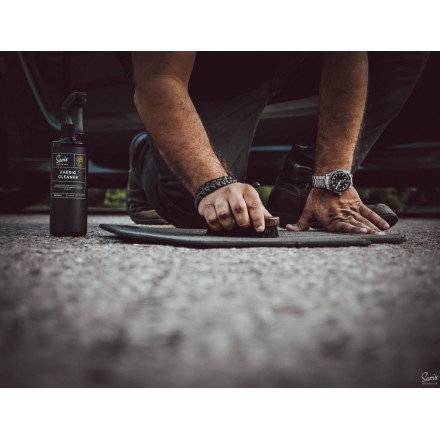 Površino pred čiščenjem posesajte. Nanesite Fabric Cleaner direktno na površino in obrišite z vlažno mikro krpo. Po potrebi si lahko pomagate tudi s krtačko za tekstil. Pustite, da se čistilo posuši na svežem zraku. Po potrebi postopek ponovite. Po končanem čiščenju priporočamo še zaščito tekstila z Sam's Detailing Fabric Protectant.