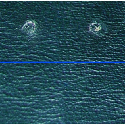 Čiščenje: Temeljito očistite poškodovano površino s čistilnim alkoholom. Odstranite vso umazanijo in pozorno preverite, ali je površina res čista in razmaščena predno se lotite samega popravila. Če so robovi obrabljeni ali nacefrani, jih zgladite s tapetniškim nožem ali britvico.