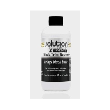 Solution Finish je odličen izdelek za obnovo zbledelih, črnih plastičnih površin. Površinam povrača originalen globok in bogat črn izgled, brez mokrega videza. Solution Finish se posuši zelo hitro in ne masti površine. Unikatna formula združuje starodavne sestavine in napredno polimerno tehnologijo, katera zaotavlja dolgotrajen, črn zaščitni efekt. Izdelek je zasnovan za profesionalno uporabo, ne vsebuje silikonov, le naravna olja. Primeren je za uporabo na vozilih, plovilih, gumijastih tesnilih, motorjih, športni opremi,... Odlično deluje tudi na sivih plastikah. Izdelek je izjemno enostaven za uporabo.