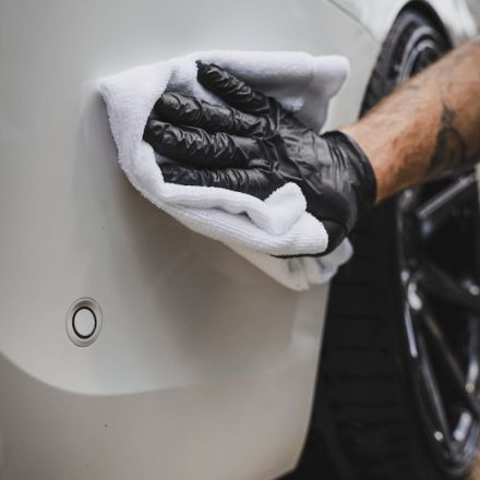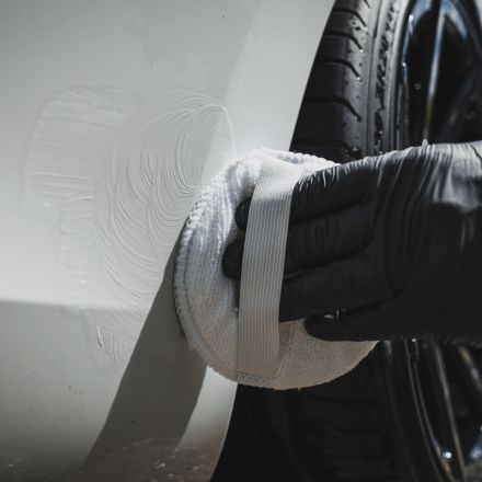 Pred nanosom se prepričajte, da na površini ni umazanije. Nanesite manjšo količino sredstva neposredno na madež in pustite delovati. Z čisto in kvalitetno mikro krpo odstranite ostanek sredstva in katrana. Sredstvo se na površini ne sme zasušiti.