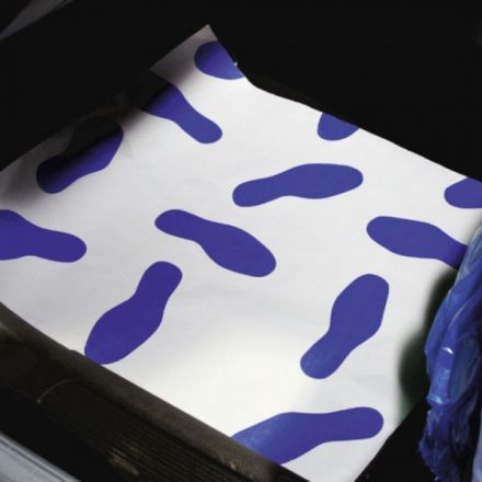 Polimerna zaščita za tla. Sestavljena iz dveh delov, spodnji PE, zgornji mat papirni del. Odporen in ne absorbira tekočine. Dimenzija: 450x500mm. V kompletu je 250 zaščitnih podlog.