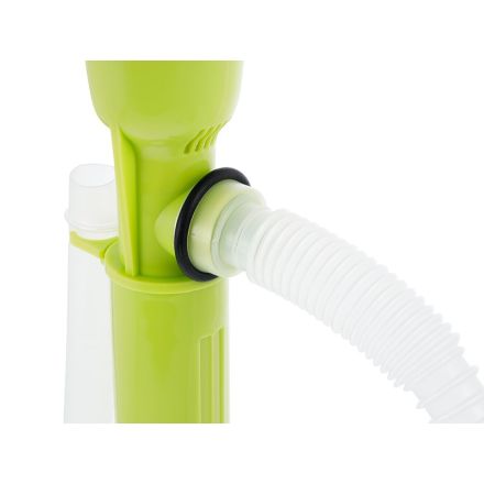 Visokozmogljiva električna črpalka za gorivo, vodo, olja in druge tekočine. Zelo priročna in enostavna za uporabo - samo vstavite baterije, potopite konec črpalke v tekočino, postavite izhodno cev v ločeno posodo in pritisnite gumb VKLOP/IZKLOP (na vrhu naprave).