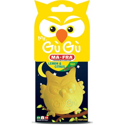 Mr. Gù Gù je izjemno zanimiv osvežilec v obliki sove. Narejen je iz kvalitetne gume, katera je odporna na visoke in nizke temperature. Obstojnost osvežilca je do 4 tedne.