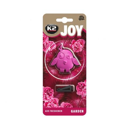 K2 Joy je dolgotrajen osvežilec zraka za vozilo v obliki sove. Material prepojen z prijetno in ne vsiljivo aromo. Primeren je za montažo na režo zračnika vozila. Vonj garden je mešanica vonjev lotusa, vrtnice in jasmina.