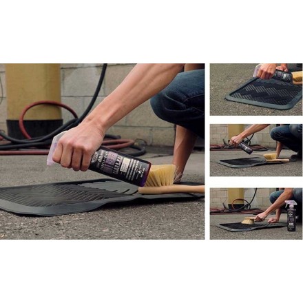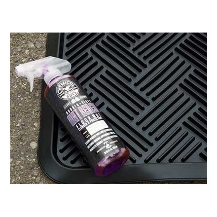 Chemical Guys Mat Renew hitro in učinkovito čistilni in negovalno sredstvo za čiščenje in obnovo gumijastih tepihov, gumijastih tal in stopalk. Odstranjuje umazanijo in blato, za seboj pa pušča mat izgled. Ne vsebuje silikonov, kar pomeni, da površina po čiščenju ne drsi in ni svetleča. Mat Renev je popolnoma biorazgradljiv in prijazen do okolja. Preprečuje bledenje, razbarvanje in popokanje gume. Odstranjuje težjo umazanijo in blato v sekundah. Tepihi in ostale pivršine po čiščenju dobijo originalen, tovarniški videz.