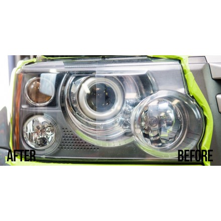 Chemical Guys Headlight Restorer and Protectant je polirna pasta za povračanje jasnosti obledelim žarometov. Hitro in učinkovito odstranjuje stare in poškodovanje plasti laka, obnovi žaromet, dodana zaščita pa preprečuje nadaljnje bledenje. Pasta je zelo enostavna za uporabo, tako ročno, kot strojno. Brušenje žarometov ni potrebno, čeprav se pri bolj poškodovanih površinah priporoča.