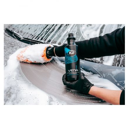 K2 Vena je profesionalni ekstremno efektiven in visoko koncentriran šampon prijetnega vonja za pranje vozil. Na površini ustvarja hidrofoben zaščitni sloj ki enostavno odbija vodne kapljice. Popolnoma varen za uporabo na vozilih, ki so povoskani ali premazani z keramično zaščito. Stabilna dolgotrajna pena zagotavlja izjemen učinek čiščenja. Šampon ustvari tanko hidrofobno zaščito, ki izjemno učinkovito odbija vodo in umazanijo, kar zagotavlja zaščito površine in izjemno sijočo površino.