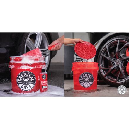 Chemical Guys Wash Bucket je zadnji hit v detailingu. Rdeča barva poskrbi, da vedro ni dolgočasne bele barve ter, da vedno izstopa. Vedro je izdelano iz trpežne in robustne plastike. Primeren za večino vložkov za varno pranje na trgu. Volumen vedra je 16L. Opremljen z logotipom Chemical Guys.