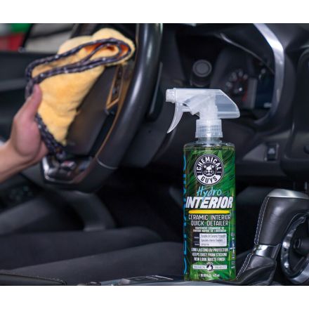 Chemical Guys Ceramic Interior detailer je moderno, vrhunsko sredstvo za nego notranjosti vozil. Dodani UV blokerji in unikatni keramični delci zagotavljajo dolgotrajno zaščito površinam in jim povrnejo originalen mat izgled. Poleg zaščite hitro in enostavno odstranjuje nesnage, prstne odtise in prah med tem, ko očiščena površine preprečuje sprijemanje umazanije, omogoča samo čistilni efekt in tako omogoča da notranjost vozila dlje časa ostaja čista. Uporabljamo lahko na vseh vrstah površin kot so plastike, vinyl, usnje, ... V kolikor so površine zaščitene z zaščitnim premazom lahko sredstvo brez problema uporabimo kot dodaten zaščitni sloj.